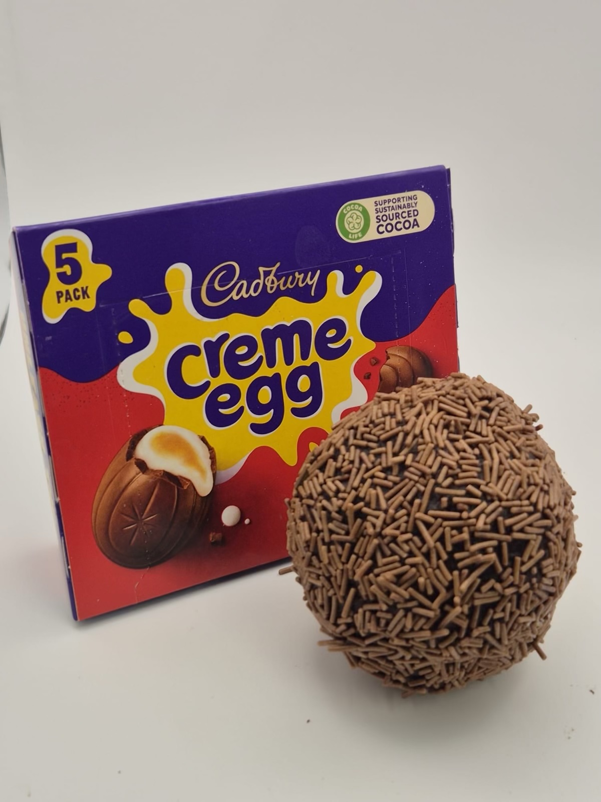 A whole Cadbury’s Crème egg covered in our fudgey chocolate brownie, rolled in chocolate vermicelli. A real Easter treat!